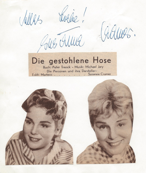 signierte Albumseite: Alles Liebe! Susanne Cramer |